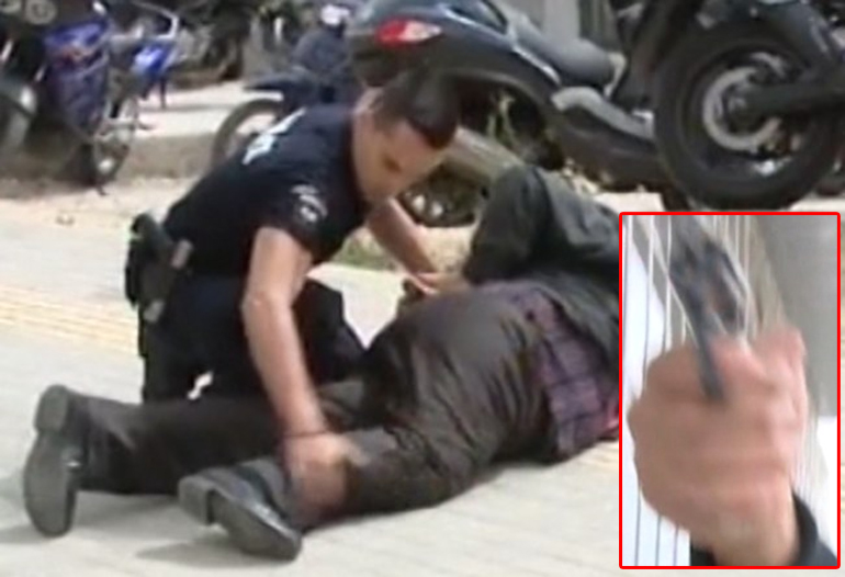 Ο άνδρας στάθηκε μπροστά στα μικρόφωνα και την ώρα που δήλωνε: «Αισθάνομαι ότι θα γεράσουμε και δεν θα τον βρούμε (σ.σ.: τον Μάριο Παπαγεωργίου ), γιατί έχουμε μπλέξει με λαμόγια», έβγαλε ένα όπλο, το σήκωσε ψηλά και το άδειασε, πυροβολώντας στον αέρα. Ακολούθησε πανικός, αφού όλα έγιναν μέσα σε δευτερόλεπτα. Ο άνδρας προσπάθησε να αποχωρήσει, αλλά αστυνομικοί τον εμπόδισαν, περνώντας του χειροπέδες, εν μέσω διαμαρτυριών συγγενών και φίλων του που έσπευσαν για να του συμπαρασταθούν.