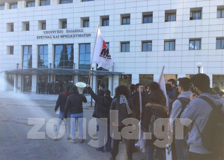 Ένταση σημειώθηκε στο υπουργείο Παιδείας το μεσημέρι της Τετάρτης όπου πραγματοποιούν διαμαρτυρία οι φοιτητές. Η κατάσταση ομαλοποιήθηκε πριν τις 15.00 μετά την παρέμβαση των αστυνομικών που έκαναν χρήση χημικών. Οι πύλες του υπουργείου Παιδείας, για να μπουν οι διαμαρτυρόμενοι φοιτητές στον προαύλιο χώρο, ενώ επταμελής αντιπροσωπεία των φοιτητών μπήκε στο κτήριο για να συναντηθεί με τον Γενικό Γραμματέα του υπ. Παιδείας, Γιώργο Αγγελόπουλο.