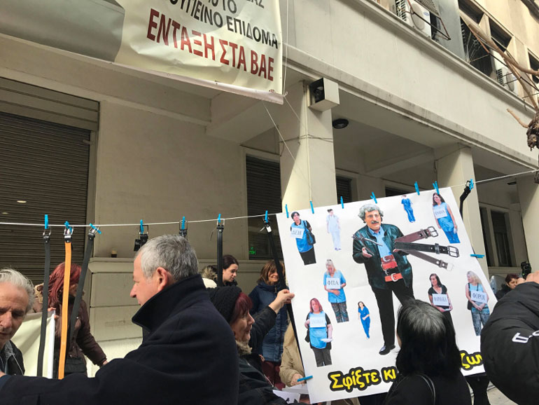 Καταγγέλλουν ακόμη ότι η κατάσταση στα δημόσια νοσοκομεία είναι τραγική λόγω της υποχρηματοδότησης.