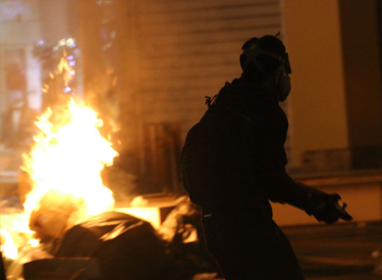 Ωστόσο, μία ομάδα αντιεξουσιαστών ξέκοψε από την πορεία και προσπάθησε να εισβάλει στο δικαστικό Μέγαρο.