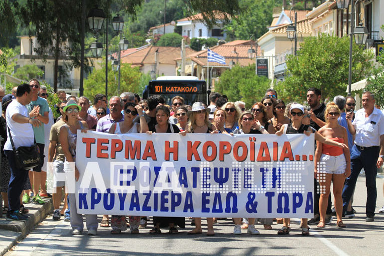 Περισσότεροι από 75 ιδιοκτήτες ταξί του Πύργου παράταξαν τα οχήματά τους στην οδό Κατακόλου στη Συκιά στις 10.30 το πρωί και κατέβηκαν στο λιμάνι για να ενωθούν με τους επαγγελματίες και τους εργαζομένους που έκλεισαν στη συντριπτική πλειονότητά τους (πλην πολύ ελαχίστων περιπτώσεων) τα καταστήματα στην αγορά του χωριού. Η συνάντηση με τον λιμενάρχη στην είσοδο του λιμανιού για να τους ανακοινώσει την απόφαση δεν ματαίωσε τη διαμαρτυρία, που συνεχίστηκε και μάλιστα με εντάσεις μόλις κατέβηκαν οι πρώτοι τουρίστες από το κρουαζιερόπλοιο «MSC Poesia» που κατέπλευσε εκείνη την ώρα. Μάλιστα, το πλήθος των διαμαρτυρόμενων κινήθηκε απειλητικά προς τους ιδιοκτήτες των λεωφορείων που περίμεναν – πέραν των προγραμματισμένων της κρουαζιέρας και εκείνων που στοχοποιούνται για άγρα τουριστών από τους ιδιοκτήτες ταξί και τους επαγγελματίες του χωριού.