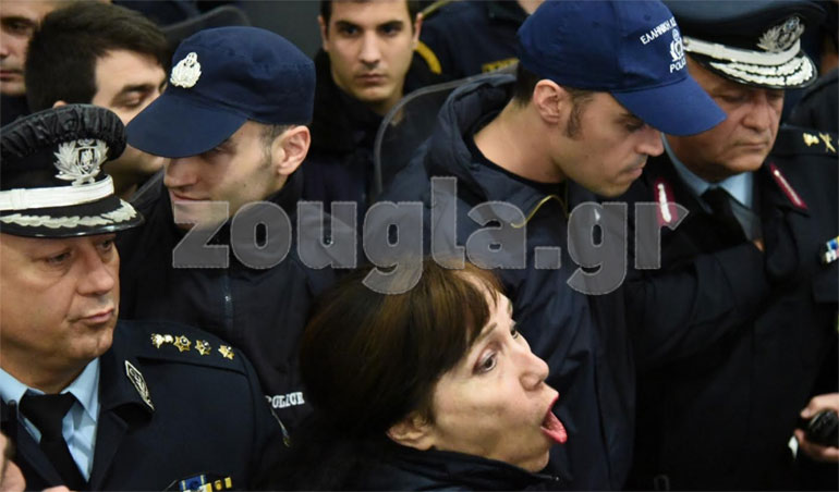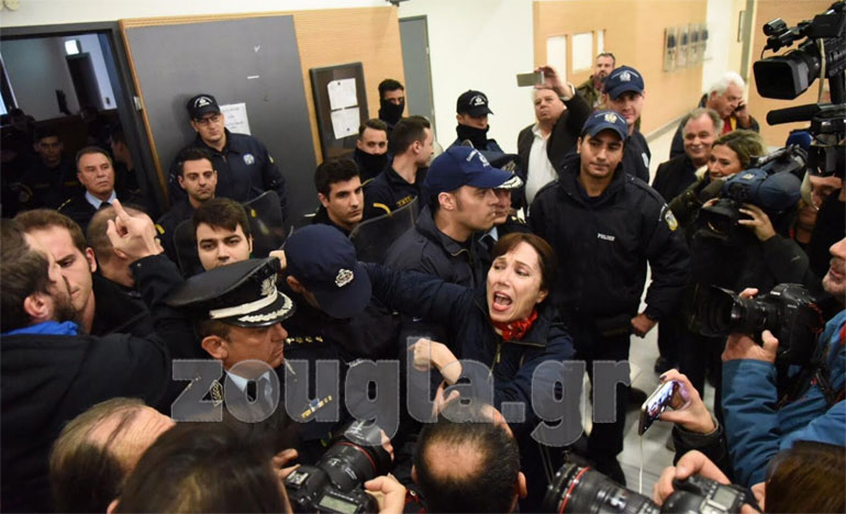 Οι πολίτες που προσπάθησαν να ματαιώσουν τους πλειστηριασμούς κατήγγειλλαν πως άνδρες της αστυνομίας τους έσπρωχναν και τους τσιμπούσαν για να τους απομακρύνουν.