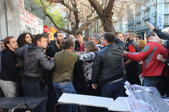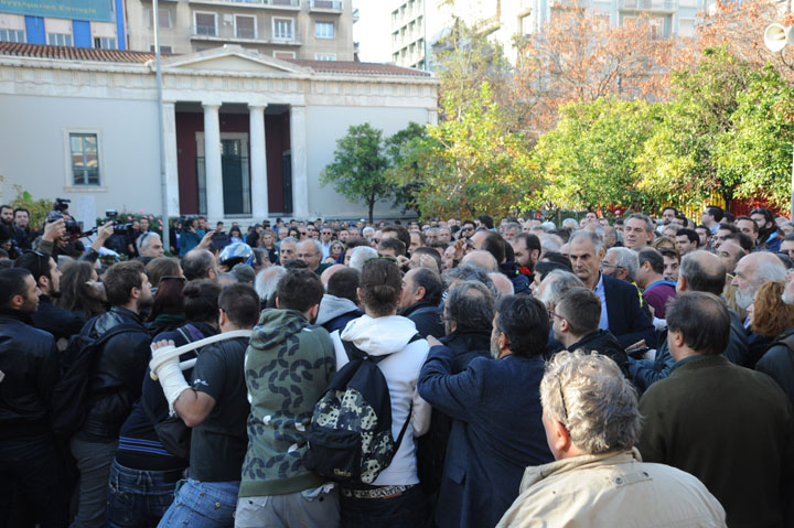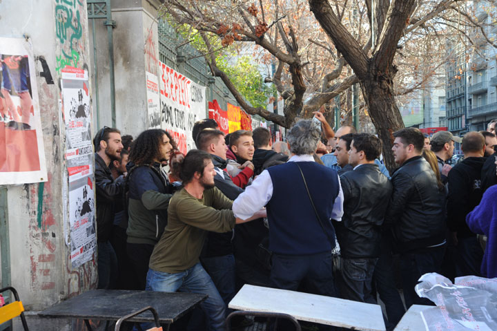 Ομάδα ατόμων που πρόσκεινται στην εξωκοινοβουλευτική Αριστερά προσπάθησαν να «μπλοκάρουν» την είσοδο στο ΕΜΠ, για να μην επιτρέψουν στον πρωθυπουργό να εισέλθει, ωστόσο μετά από «σπρωξιές» και μικρούς διαπληκτισμούς, δεν τα κατάφεραν.