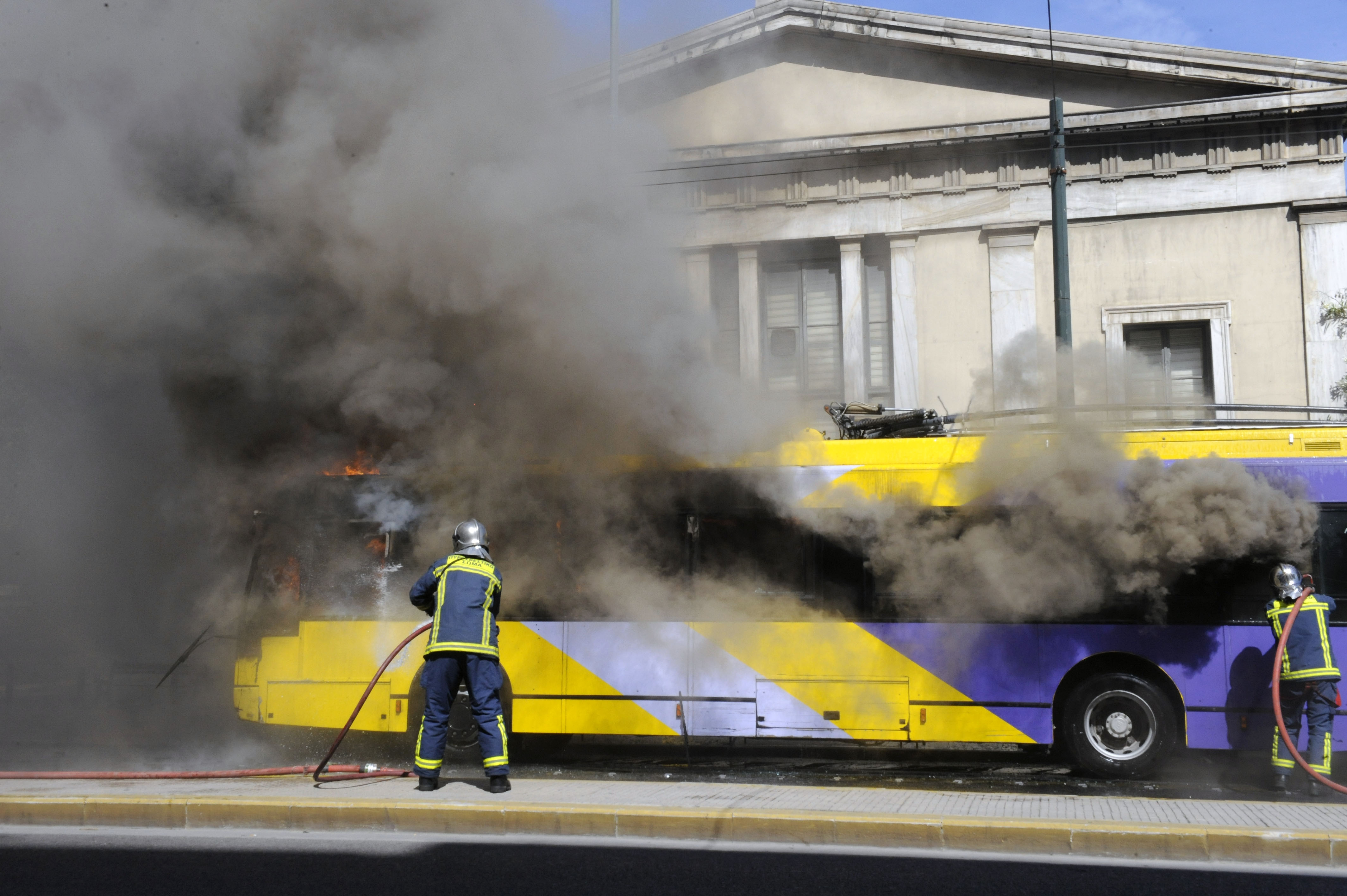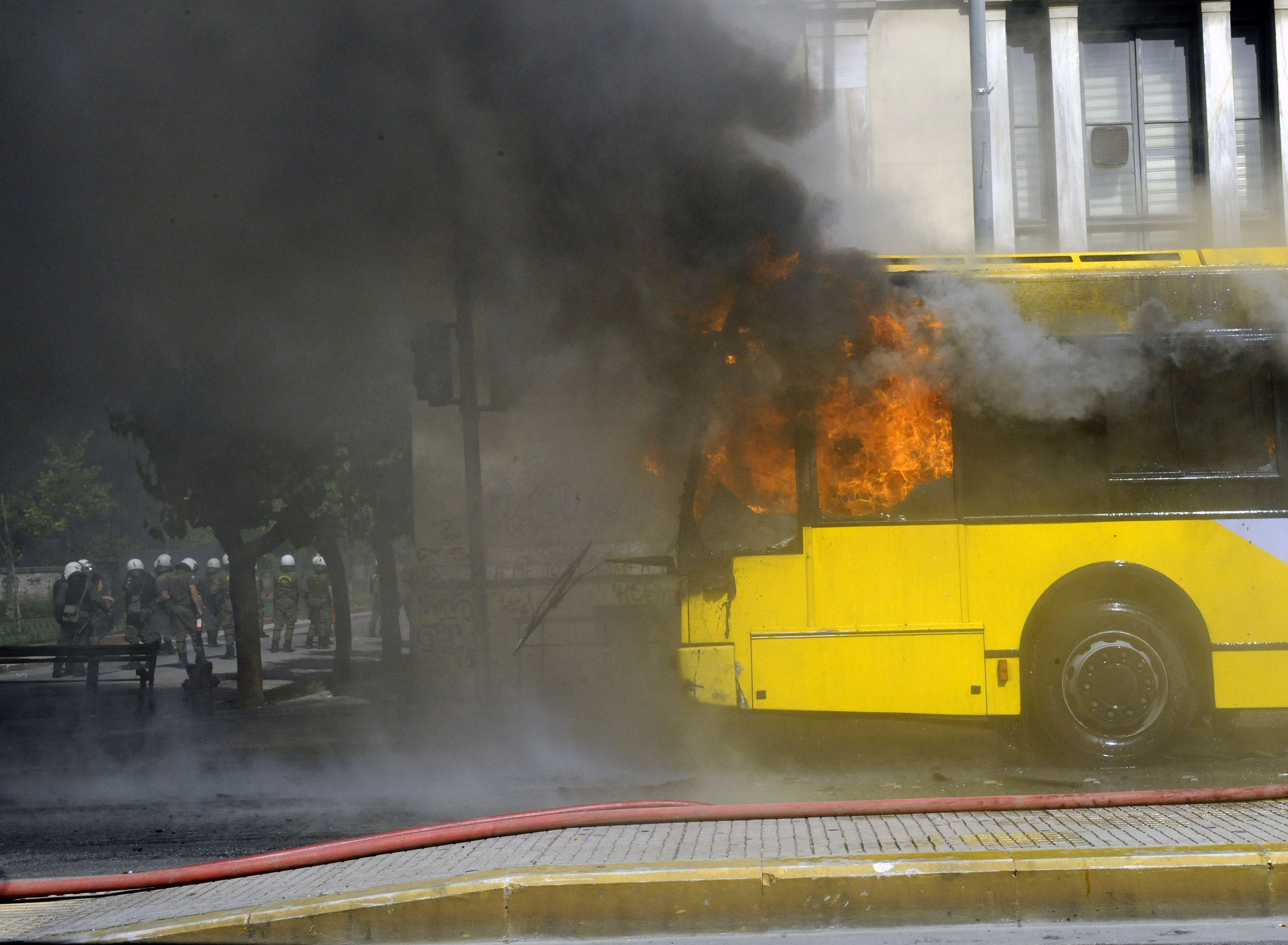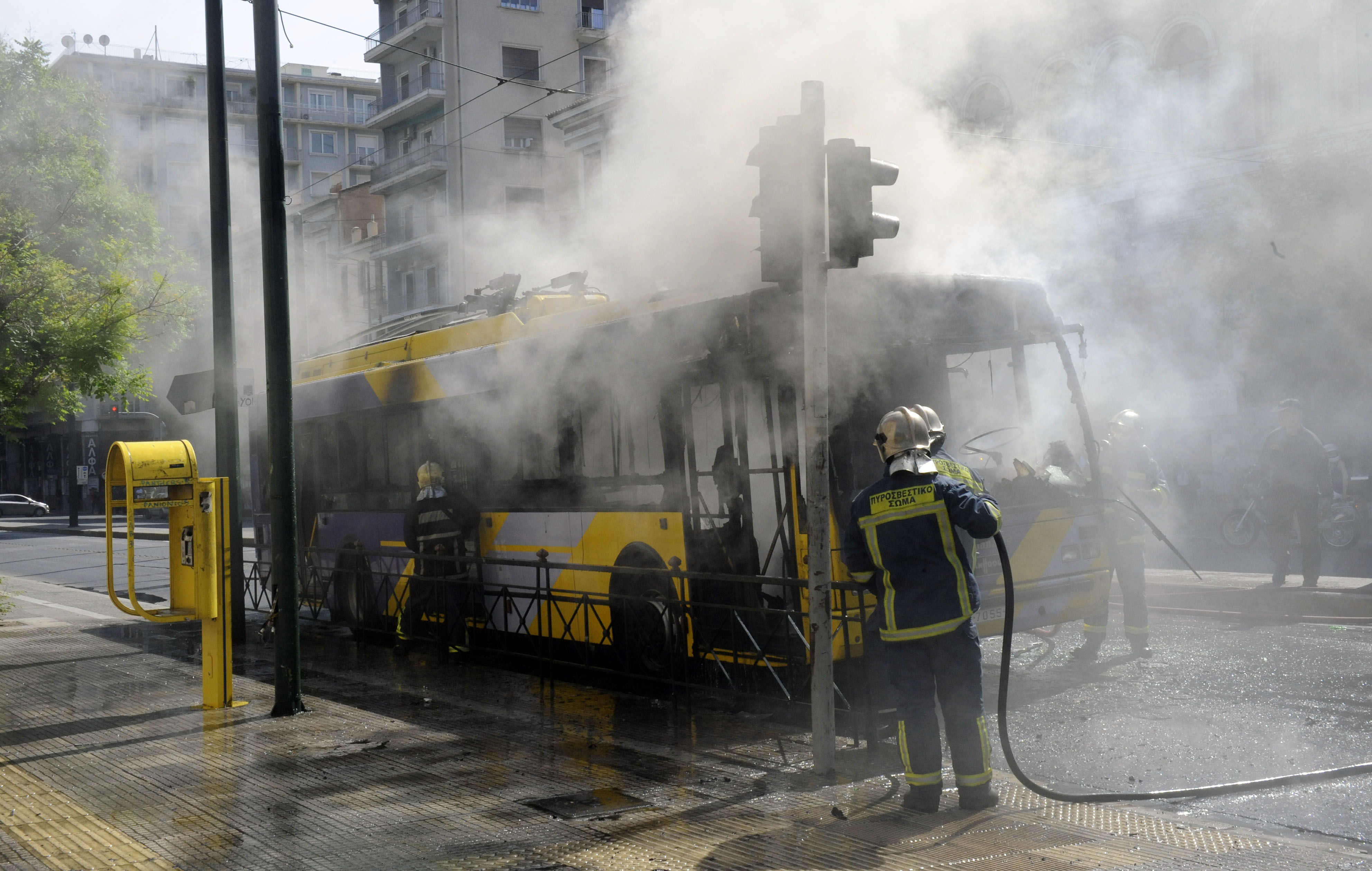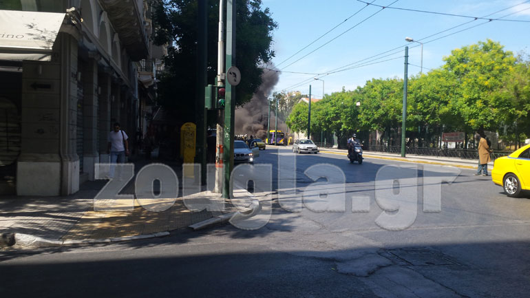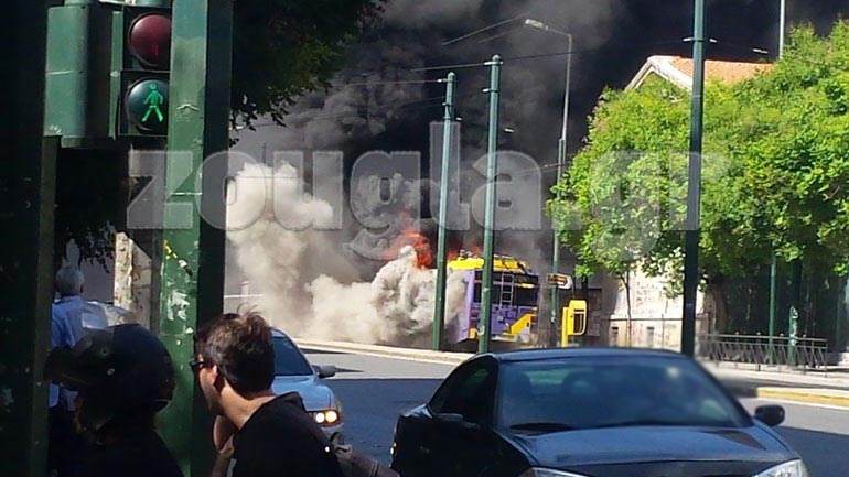 Στη συμβολή των οδών Πατησίων και Αβέρωφ, οι νεαροί ακινητοποίησαν διερχόμενο τρόλεϊ, κατέβασαν τους επιβάτες και στη συνέχεια το πυρπόλησαν.