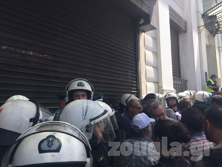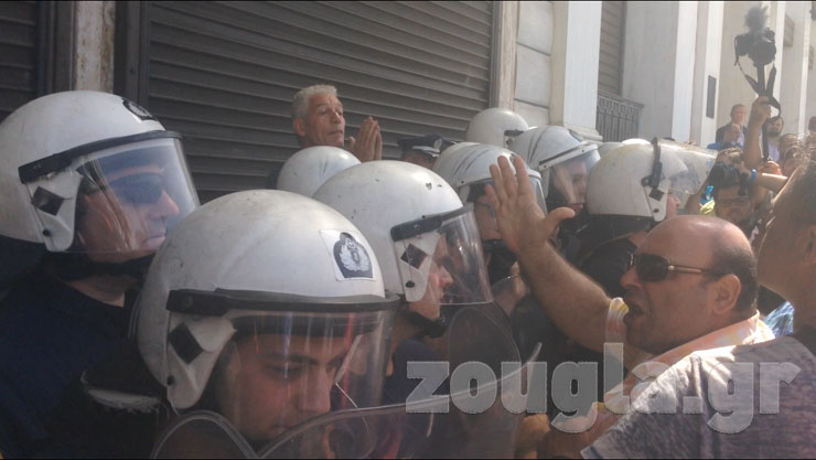 Μόλις έφτασαν στην είσοδο του ξενοδοχείου, τα ρολά κατέβηκαν και μπροστά τους παρατάχθηκαν άνδρες των ΥΜΕΤ κλείνοντάς τους τον δρόμο.