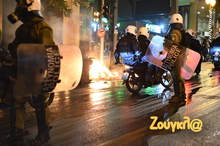 Στην Αθήνα ξέσπασαν συγκρούσεις στην οδό Εμμανουήλ Μπενάκη στα Εξάρχεια, καθώς νεαροί έστησαν οδοφράγματα και έβαλαν φωτιά σε κάδους απορριμμάτων, ενώ στην οδό Ναυαρίνου και Αραχώβης πέταξαν μολότοφ σε διμοιρίες των ΜΑΤ.