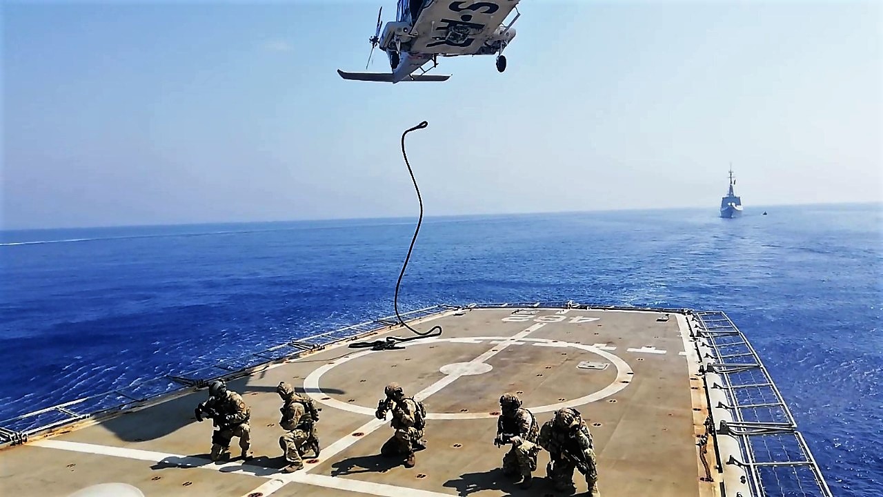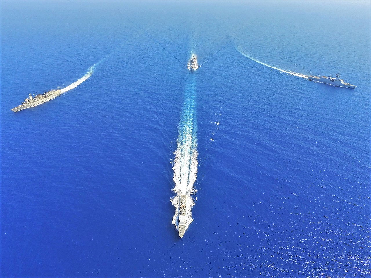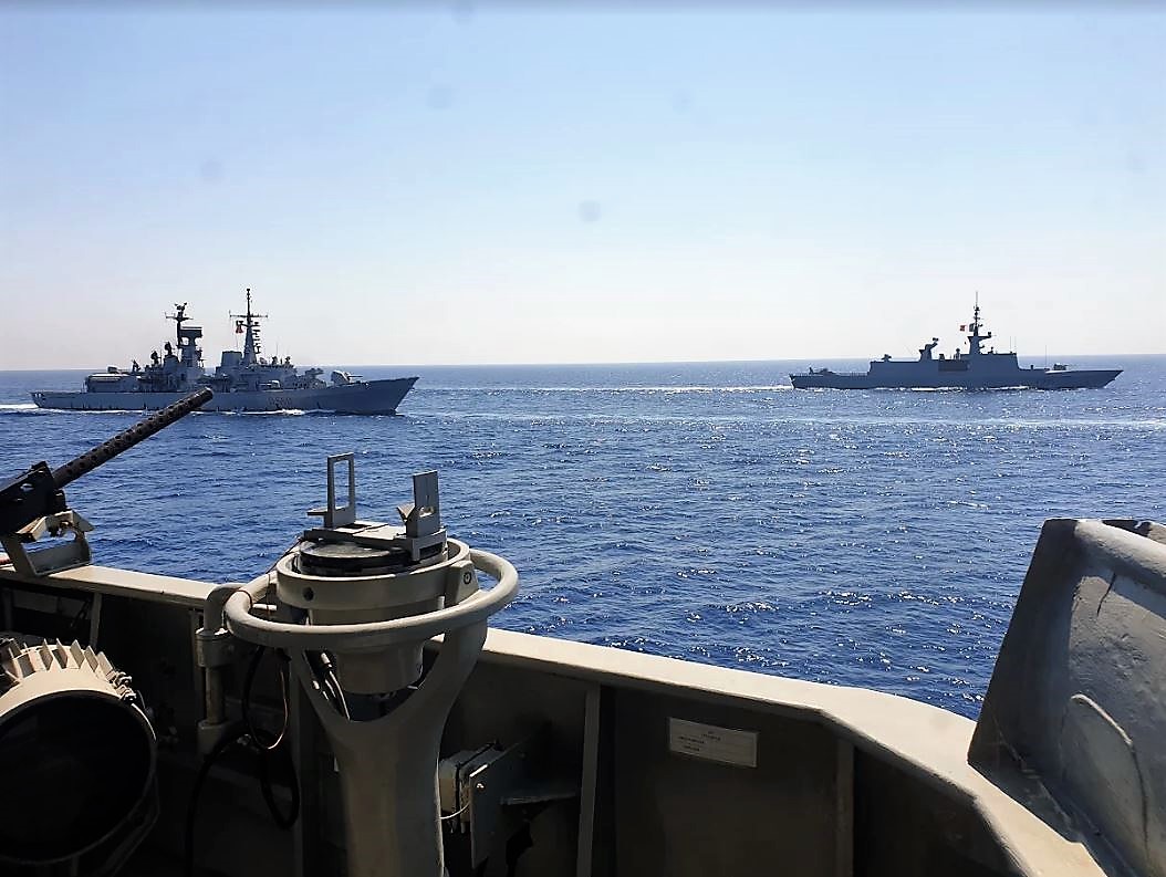 Πρόκειται όπως σημειώνει το ΓΕΕΘΑ, για την πρώτη δραστηριότητα των τεσσάρων χωρών στο πλαίσιο της κοινής επιχειρησιακής παρουσίας τους στην Ανατολική Μεσόγειο για την εφαρμογή και το σεβασμό του Διεθνούς Δικαίου της Θάλασσας.