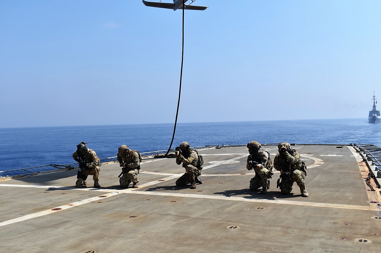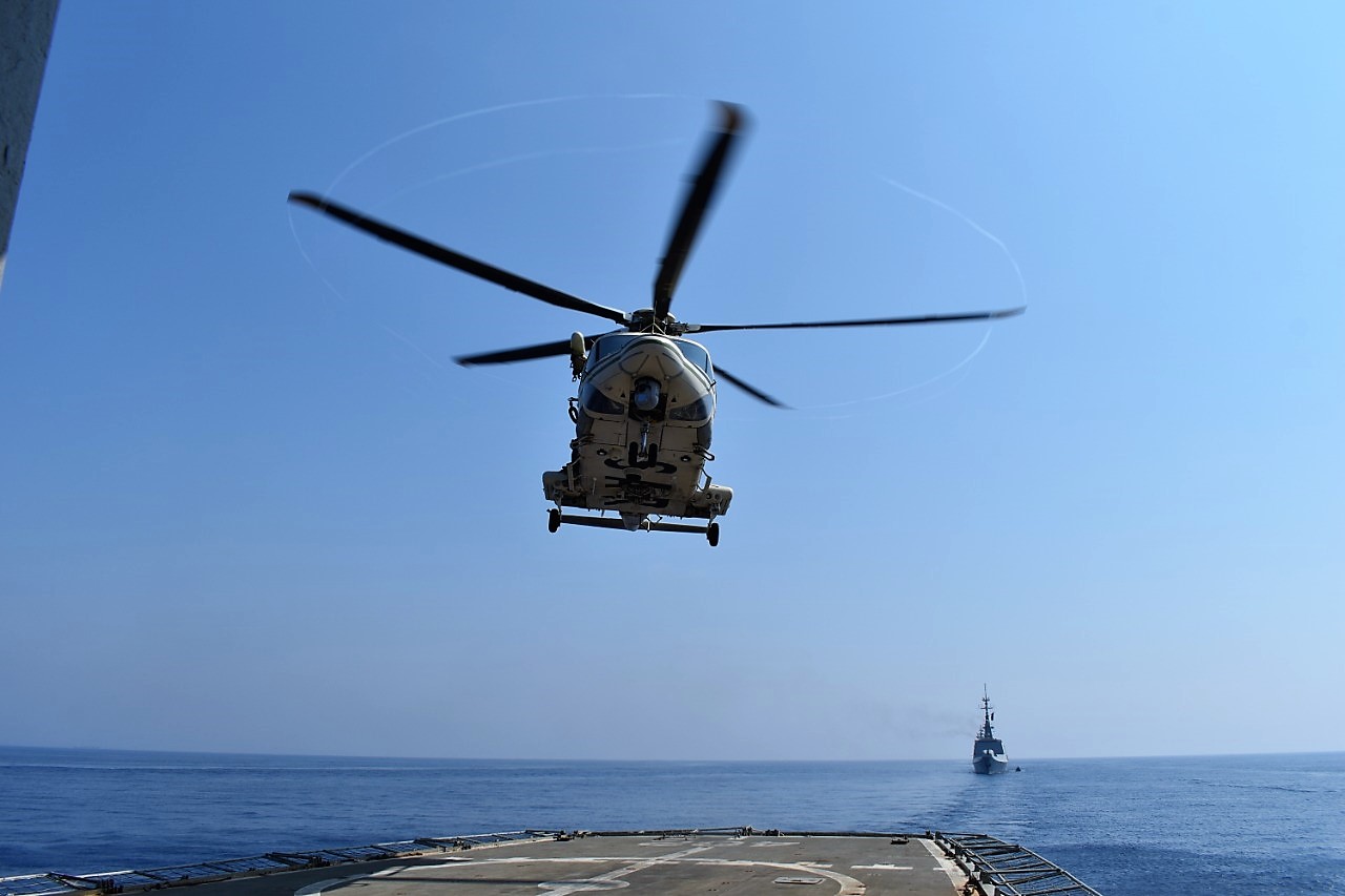 Εικόνες από την κοινή άσκηση Ελλάδας-Γαλλίας-Κύπρου-Ιταλίας EUNOMIA που πραγματοποιήθηκε στη θαλάσσια περιοχή νοτίως της Κύπρου από τις 26 έως και τις 28 Αυγούστου, έδωσε στη δημοσιότητα το Γενικό Επιτελείο Εθνικής Άμυνας.