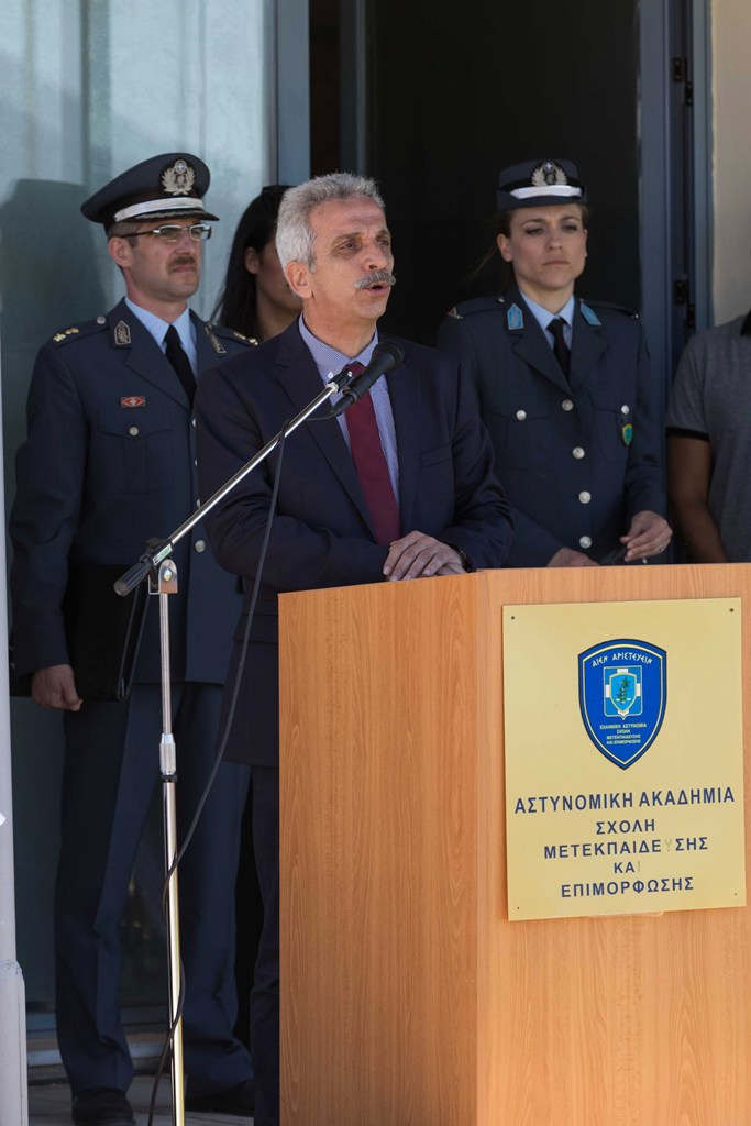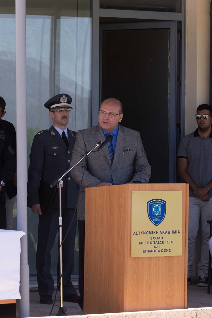…Θέλω να σας ευχαριστήσω για δύο συγκεκριμένα πράγματα. Πρώτα από όλα γιατί αντέξατε σε μία δύσκολη, επίπονη, σκληρή εκπαίδευση και επειδή έχω την ευτυχία και την τιμή να είμαι Προϊστάμενος στην Γραμματεία Δημόσιας Τάξης εδώ και δυόμιση χρόνια, ξέρω από πρώτο χέρι σε πόσο δύσκολες συνθήκες γίνεται η εκπαίδευσή σας….
