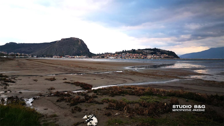 Εντυπωσιάζει για ακόμη μια φορά το φαινόμενο της άμπωτης στην πόλη του Ναυπλίου, καθώς η έκταση που αποκαλύπτεται είναι τεράστια