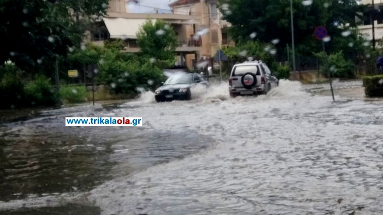 Ισχυρή νεροποντή σημειώθηκε το απόγευμα της Τρίτης στα Τρίκαλα Θεσσαλίας, με τους δρόμους να μετατρέπονται σε ποτάμια.
