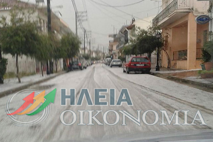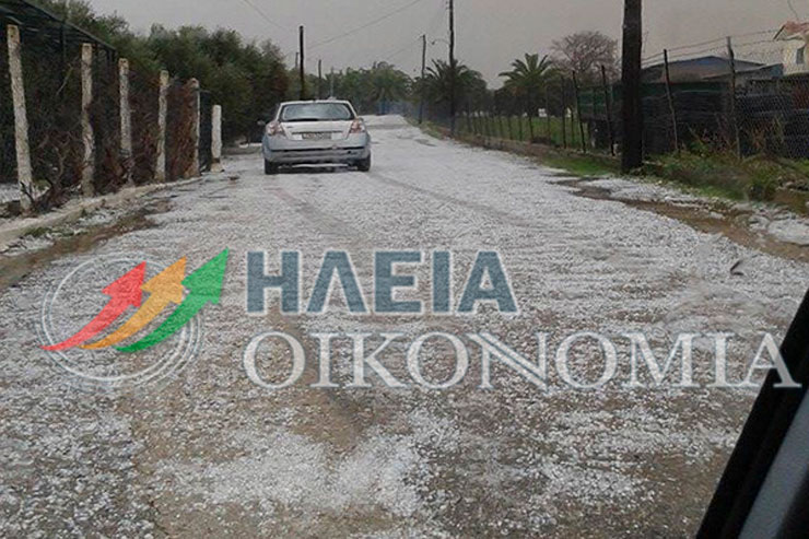 Έντονη χαλαζόπτωση σημειώθηκε σήμερα το πρωί στο Τραγανό Ηλείας, στην Ανδραβίδα και σε παρακείμενες περιοχές.