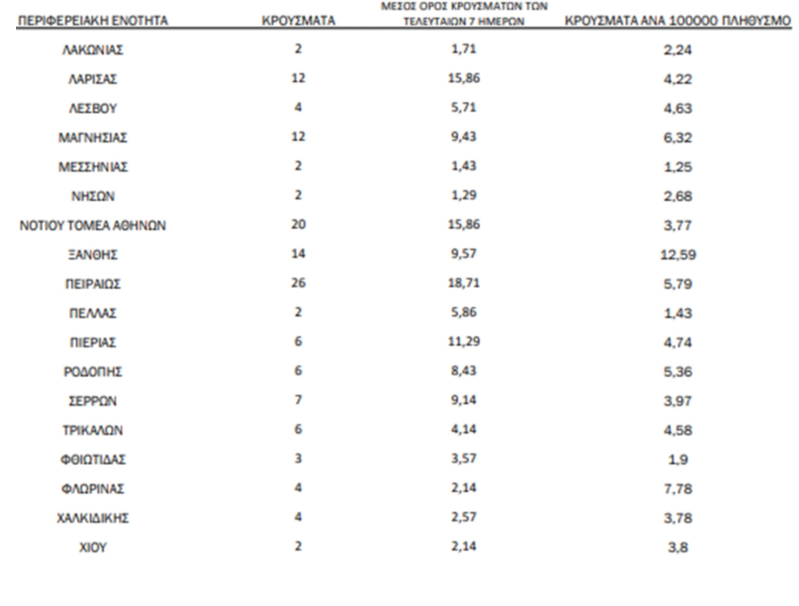 - 20 κρούσματα στην ΠΕ Νότιου Τομέα Αθηνών