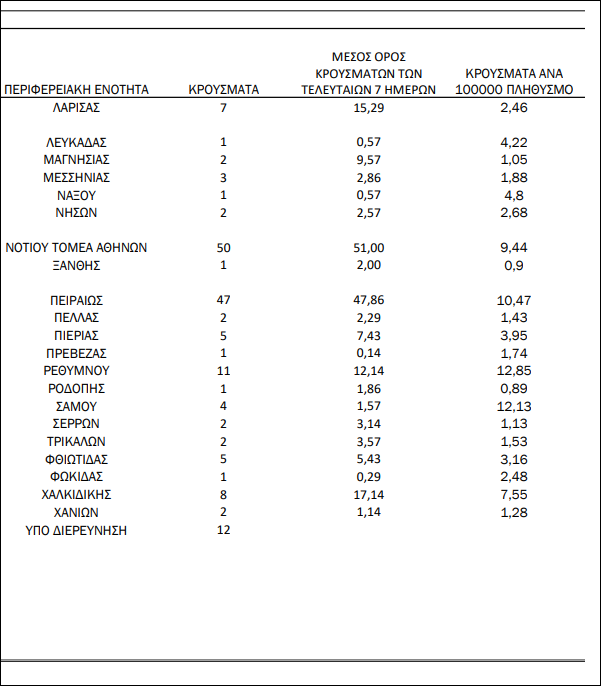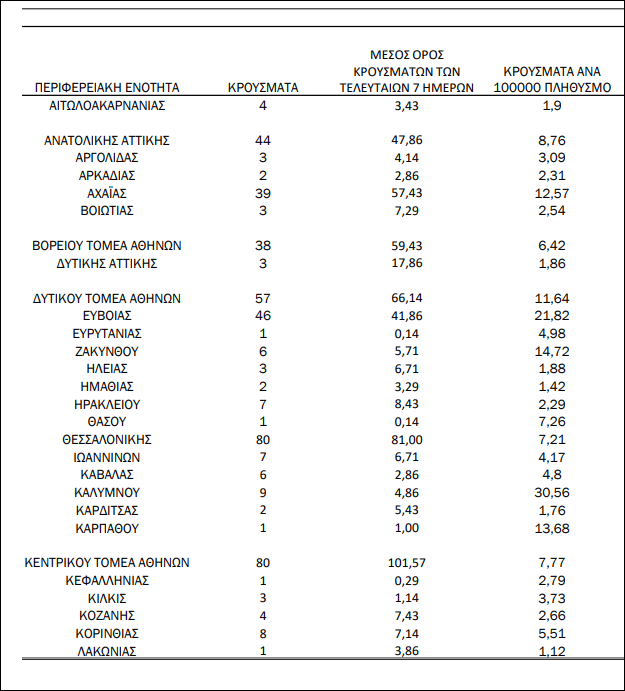 Αναλυτικά η γεωγραφική κατανομή των 638 νέων κρουσμάτων Covid-19 στις υπόλοιπες περιφέρειες τις Ελλάδας.