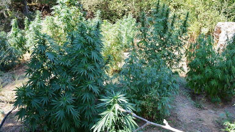 Ειδικότερα, κατόπιν αξιολόγησης και αξιοποίησης στοιχείων, πραγματοποιήθηκε αστυνομική επιχείρηση, κατά τη διάρκεια της οποίας εντοπίστηκαν σε δύο ειδικά διαμορφωμένους και κατάλληλα εκχερσωμένους χώρους, οι οποίοι απείχαν μεταξύ τους μικρή απόσταση, δύο φυτείες κάνναβης, όπου στη μία καλλιεργούνταν 34 δενδρύλλια, ενώ στην άλλη 45, ύψους από 0,5 έως 2,5 μέτρα περίπου, τα οποία τέθηκαν σε διακριτική επιτήρηση.