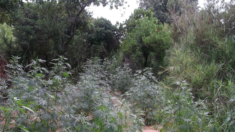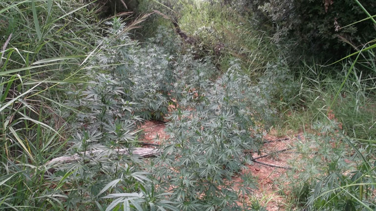 Ειδικότερα, κατά τις εξερευνήσεις εντοπίστηκαν σε ειδικά διαμορφωμένους και κατάλληλα εκχερσωμένους χώρους δύο χασισοφυτείες, όπου στη μία καλλιεργούνταν 245 δενδρύλλια, ύψους από 0,4 έως 2,5 μέτρα περίπου, ενώ στην άλλη 55 φυτά κάνναβης, ύψους από 1 έως 1,5 μέτρο περίπου, τα οποία εκριζώθηκαν και κατασχέθηκαν.