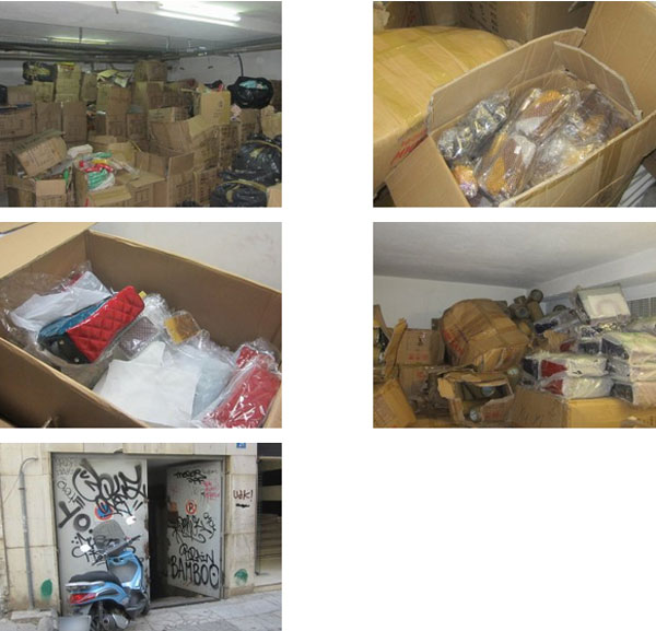1. Σε αποθήκη ισογείου, στην οδό Επικούρου, βρέθηκαν και κατασχέθηκαν συνολικά 64.725 τσάντες και σήματα, όλα απομιμητικά προϊόντα γνωστών εμπορικών οίκων του εξωτερικού. Συνελήφθη ένας υπήκοος Κίνας, ως υπεύθυνος του καταστήματος.