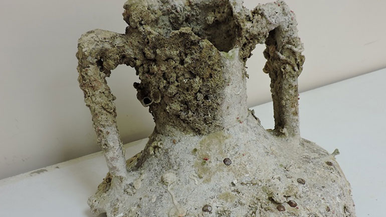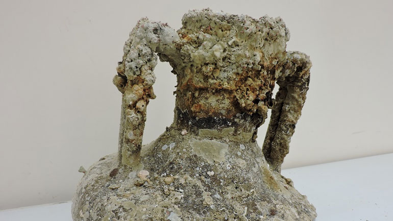 Ειδικότερα, το τμήμα του αμφορέα βρέθηκε σε αλιευτικό σκάφος ιδιοκτησίας του 40χρονου στο οποίο εργάζεται ο 35χρονος.