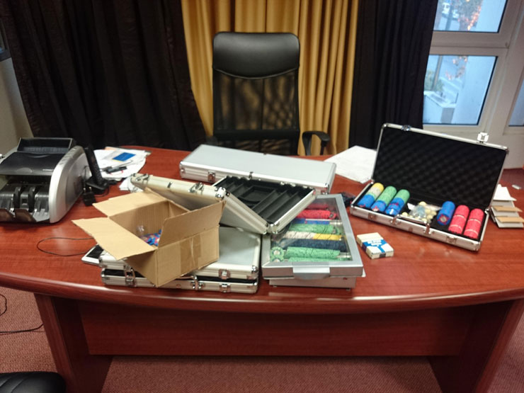 Παράλληλα, προέκυψε ότι για την εγκατάσταση των συνολικά οκτώ ειδικά διασκευασμένων τραπεζιών, για τη διενέργεια παιγνίων με παιγνιόχαρτα, τα οποία κατασχέθηκαν, δεν είχε καταβληθεί το νόμιμο τέλος.
