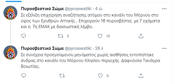 Σε τραγωδία εκτυλίχθηκε η αναζήτηση του νεαρού που έπεσε σε κανάλι του Μόρνου το μεσημέρι του Σαββάτου.