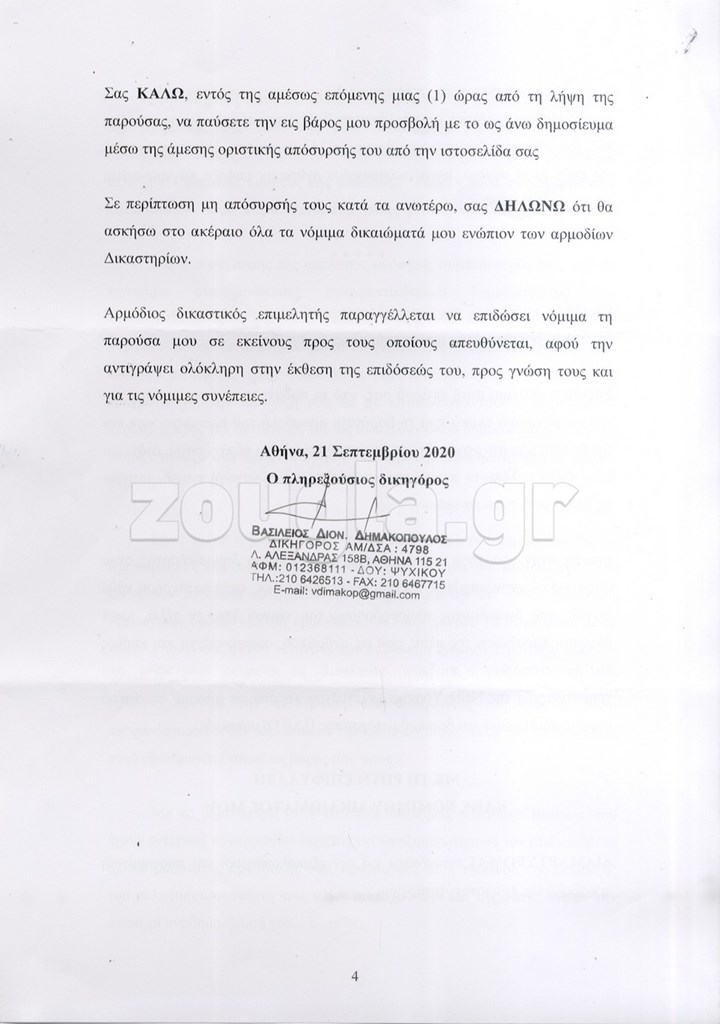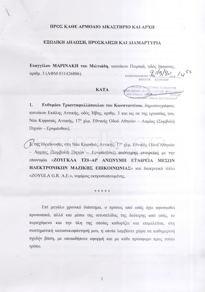 Δείτε το εξώδικο που έστειλε ο Βαγγέλης Μαρινάκης στη «Ζούγκλα»: