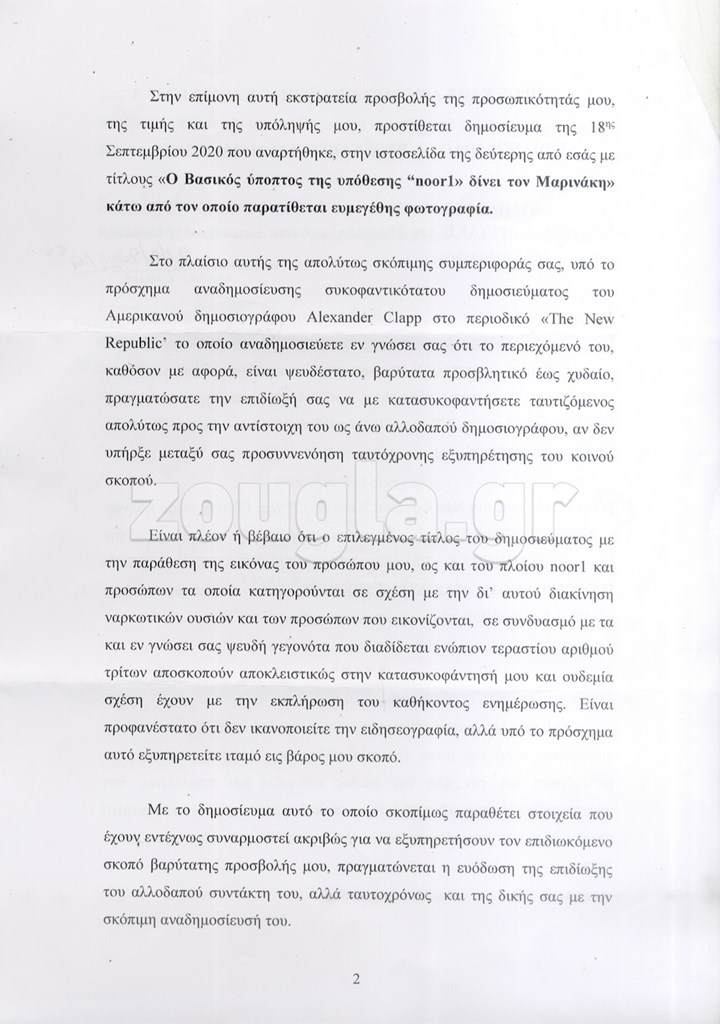 Επίσης διορθώνοντας τον καλό συνάδελφο Alexander Clapp (έγραψε πως δεν διώκεστε δικαστικά) υπενθυμίζουμε και σε εσάς πως η δική μας δημοσιογραφική έρευνα και όχι κάποια συκοφαντική καμπάνια ήταν εκείνη που οδήγησε την εισαγγελέα Ειρήνη Τζήβα, ολοκληρώνοντας την έρευνά της, να σας απαγγείλει κατηγορίες σε βαθμό κακουργήματος για εμπλοκή σας, αλλά και συνεργατών σας, στην υπόθεση NOOR1 και τη μεταφορά τριών τόνων ηρωίνης στην Ελλάδα από τον Περσικό Κόλπο.