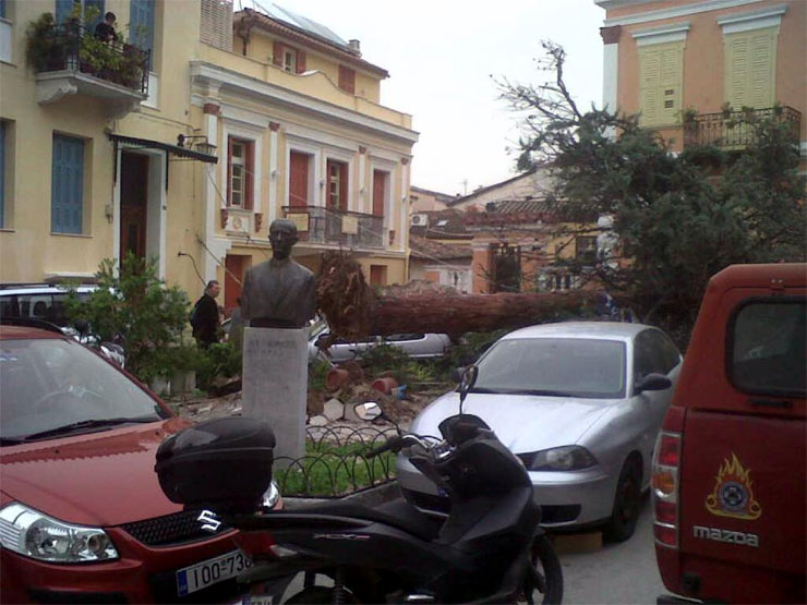 Πρόκειται για ένα αιωνόβιο κυπαρίσσι, το οποίο υποχώρησε εν μέσω θυελλωδών ανέμων. Κάτοικοι της περιοχής ανέφεραν πως είχαν επανειλημμένα προειδοποιήσει τις αρμόδιες αρχές της Τοπικής Αυτοδιοίκησης για την κατάσταση στην οποία βρισκόταν το δέντρο, χωρίς ωστόσο να γίνει κάποια ενέργεια.