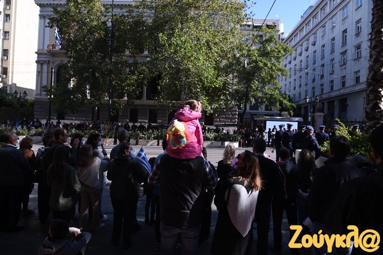 Χιλιάδες πολίτες συγκεντρώθηκαν στο Σύνταγμα για να παρακολουθήσουν την μαθητική παρέλαση που πραγματοποιήθηκε, υπό τη σκιά της πανδημίας.