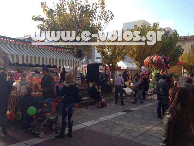 Οι έμποροι είχαν δημιουργήσει την κατάλληλη ατμόσφαιρα στην αγορά, με εορταστική μουσική και Αϊ-Βασίληδες να μοιράζουν μπαλόνια και γλυκίσματα στα μικρά παιδιά.