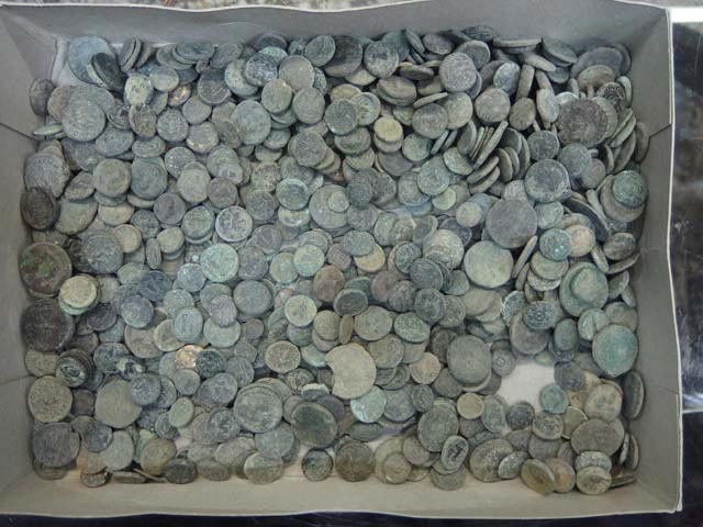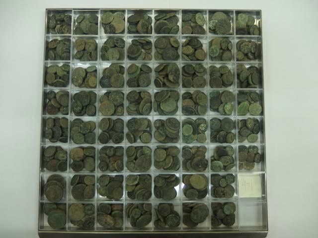 Στην πλειονότητά τους πρόκειται για χάλκινα νομίσματα κλασικών, ελληνιστικών, ρωμαϊκών και υστερωμαϊκών χρόνων. Από την αρχαιολογική τεκμηρίωση που έγινε στο Νομισματικό Μουσείο αναγνωρίστηκαν εκδόσεις νομισματοκοπείων πόλεων της Μακεδονίας (Πέλλα, Φίλιπποι, Αμφίπολη, Θεσσαλονίκη, Τράγιλος κ.α.), λιγοστές εκδόσεις πόλεων Αιγαιακής Θράκης (Μαρώνεια, Άβδηρα, ένα νόμισμα Αίνου), όπως και εκδόσεις βασιλέων Μακεδονίας (Αμύντας Γ΄, Φίλιππος Β΄, Αλέξανδρος Γ΄, Δημήτριος Πολιορκητής, Φίλιππος Ε΄, Περσεύς). Επιπλέον ανάμεσά τους εντοπίστηκαν τέσσερα (4) αργυρά δηνάρια 2ου αι. μ.Χ., δεκαπέντε (15) ρωμαϊκοί αντωνινιανοί από κράμα 3ου αι. μ.Χ. Αναγνωρίστηκαν, τέλος, ιδιαίτερες κοπές νομισματοκοπείου Θεσσαλονίκης πρώιμης βυζαντινής περιόδου (16νούμμια, 8νούμμια και ένα δυνούμμιον) και χάλκινο παλαιολόγειο torneze του Ιωάννη Ε΄ Παλαιολόγου, 2ου μισού 14ου αι..