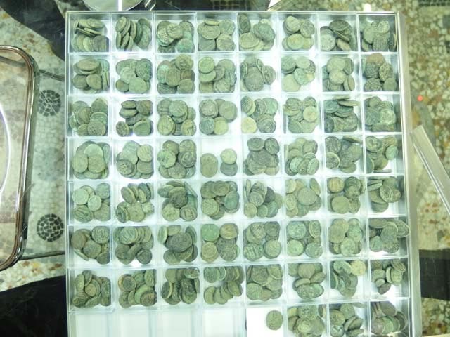 Στην πλειονότητά τους πρόκειται για χάλκινα νομίσματα κλασικών, ελληνιστικών, ρωμαϊκών και υστερωμαϊκών χρόνων. Από την αρχαιολογική τεκμηρίωση που έγινε στο Νομισματικό Μουσείο αναγνωρίστηκαν εκδόσεις νομισματοκοπείων πόλεων της Μακεδονίας (Πέλλα, Φίλιπποι, Αμφίπολη, Θεσσαλονίκη, Τράγιλος κ.α.), λιγοστές εκδόσεις πόλεων Αιγαιακής Θράκης (Μαρώνεια, Άβδηρα, ένα νόμισμα Αίνου), όπως και εκδόσεις βασιλέων Μακεδονίας (Αμύντας Γ΄, Φίλιππος Β΄, Αλέξανδρος Γ΄, Δημήτριος Πολιορκητής, Φίλιππος Ε΄, Περσεύς). Επιπλέον ανάμεσά τους εντοπίστηκαν τέσσερα (4) αργυρά δηνάρια 2ου αι. μ.Χ., δεκαπέντε (15) ρωμαϊκοί αντωνινιανοί από κράμα 3ου αι. μ.Χ. Αναγνωρίστηκαν, τέλος, ιδιαίτερες κοπές νομισματοκοπείου Θεσσαλονίκης πρώιμης βυζαντινής περιόδου (16νούμμια, 8νούμμια και ένα δυνούμμιον) και χάλκινο παλαιολόγειο torneze του Ιωάννη Ε΄ Παλαιολόγου, 2ου μισού 14ου αι..