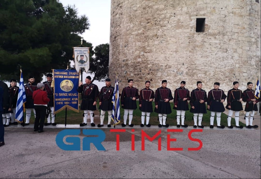 Χωρίς την παρουσία της Προέδρου της Δημοκρατίας κ. Κατερίνας Σακελλαροπούλου, αλλά με κάθε επισημότητα, πραγματοποιήθηκε η τελετή έπαρσης της Σημαίας στον Λευκό Πύργο, για την επέτειο απελευθέρωσης της Θεσσαλονίκης ανήμερα της εορτής του Πολιούχου Αγίου Δημητρίου.