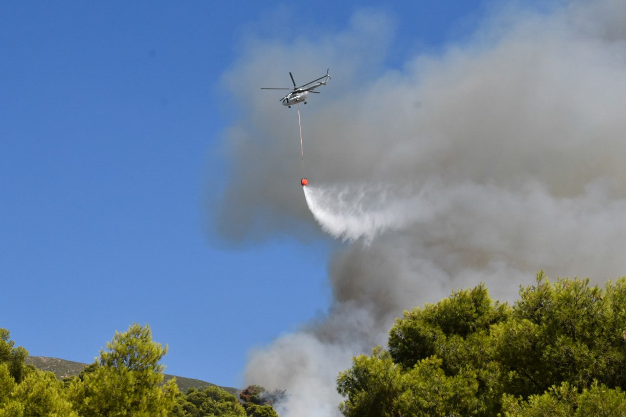 Στο μέτωπο της πυρκαγιάς επιχειρούν 118 πυροσβέστες, με 6 ομάδες πεζοπόρων τμημάτων, 35 οχήματα, 4 αεροσκάφη και 6 ελικόπτερα εκ των οποίων για εναέριο συντονισμό. Συνδρομή παρέχουν υδροφόρες και μηχανήματα έργου Ο.Τ.Α.