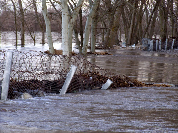 Τα ορμητικά νερά που κατέβηκαν από τη Βουλγαρία, πλημμυρίζοντας το ποτάμι του Έβρου, παρέσυραν σ’ ένα σημείο ακόμα και τον φράχτη που έχει στηθεί για τον περιορισμό της μετανάστευσης χωρίς τα απαραίτητα ταξιδιωτικά έγγραφα.
