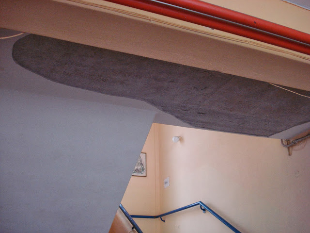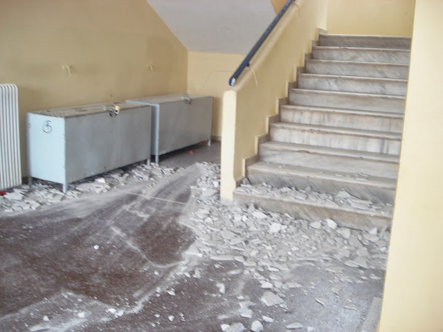 Πρόκειται για τμήμα οροφής περίπου 3 τ.μ. στο εσωτερικό του σχολείου και συγκεκριμένα στην κεντρική είσοδο, το οποίο κατέρρευσε.