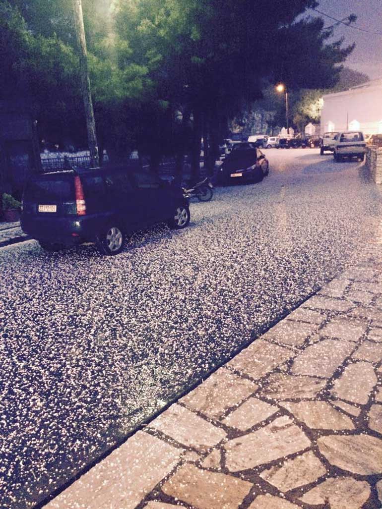 Χιονισμένο έμοιαζε το τοπίο στο νησί από τη σφοδρή χαλαζόπτωση που έπληξε ορεινές περιοχές και συγκεκριμένα το χωριό Απείρανθος.