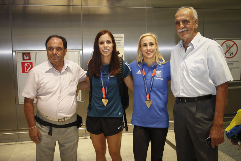 Στο αεροδρόμιο τις περίμεναν οι οικογένειες τους ενώ εκεί τους υποδέχθηκε και ο πρόεδρος του ΣΕΓΑΣ Βασίλης Σεβαστής.