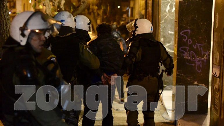 Στη συνέχεια, ομάδα ΜΑΤ συνέλαβε βιαίως έναν νεαρό στη συμβολή των οδών Στουρνάρη και Μπουμπουλίνας.