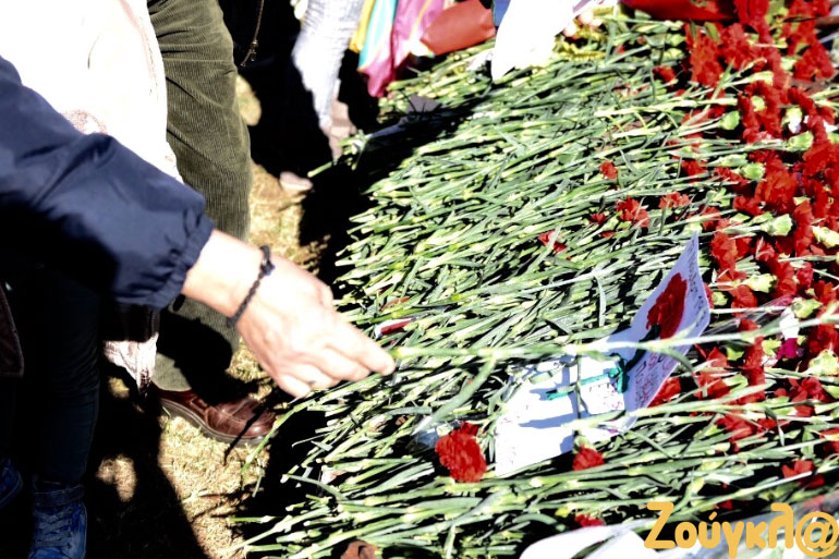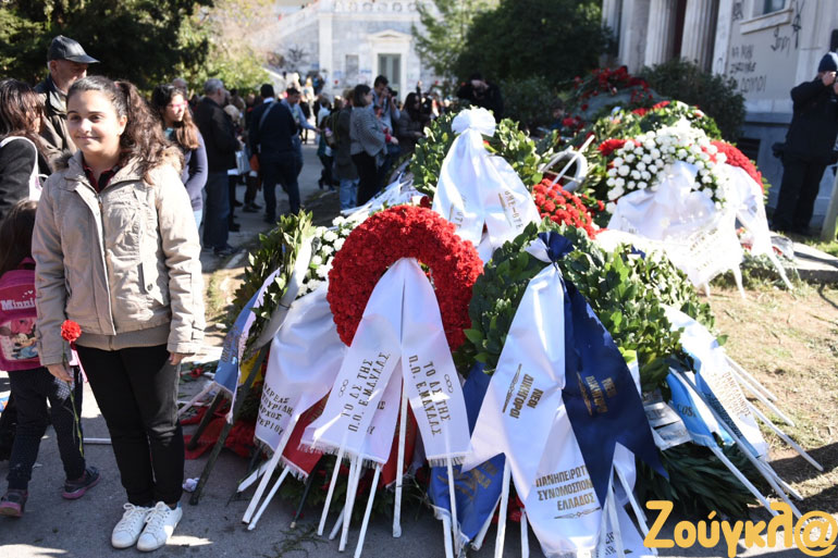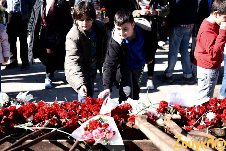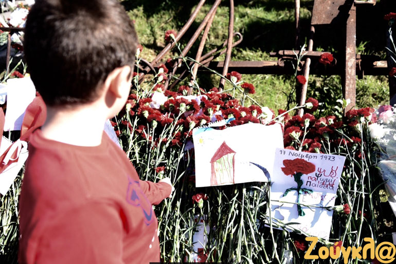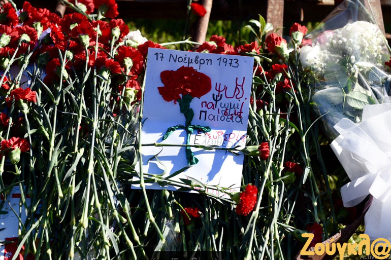 Από νωρίς το πρωί πολίτες όλων των ηλικιών, ιδιαίτερα μικροί μαθητές, αποτίουν φόρο τιμής στα θύματα της εξέγερσης.
