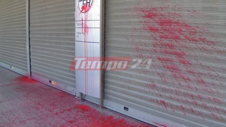 Πληροφορίες αναφέρουν πως ομάδα αντιεξουσιαστών επιτέθηκε με κόκκινες μπογιές στο κτήριο.