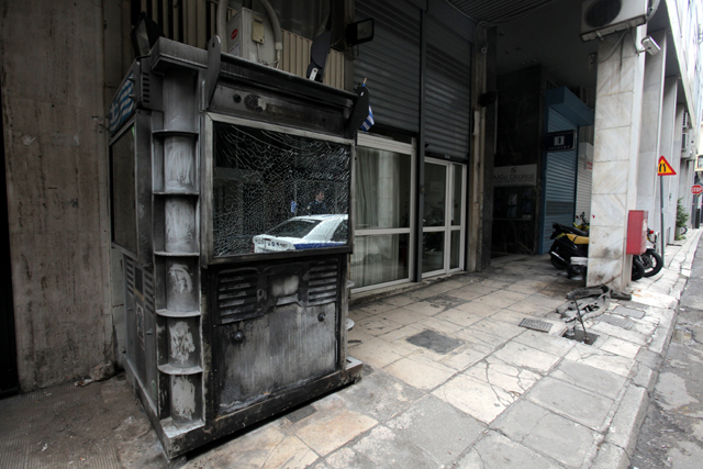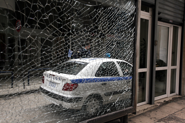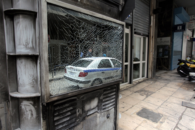 Συνολικά πέταξαν επτά μολότοφ στην είσοδο του τμήματος και στη συνέχεια τράπηκαν σε φυγή.