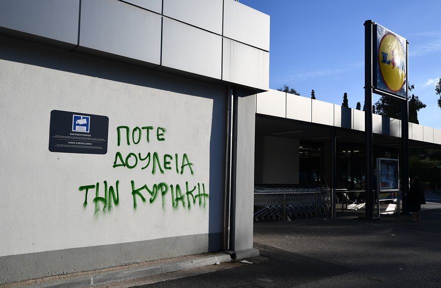 Οι δράστες έσπασαν τζαμαρίες στις προθήκες του καταστήματος, πέταξαν μπογιές ενώ έγραψαν και συνθήματα όπως «ποτέ δουλειά την Κυριακή».