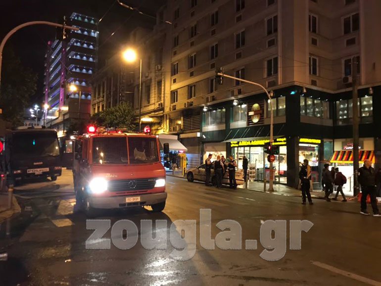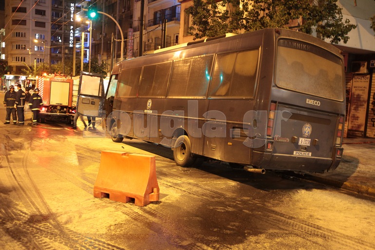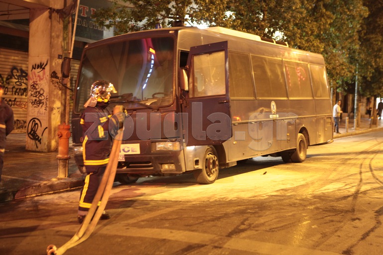 Επίθεση από αγνώστους δέχτηκε λεωφορείο της αστυνομίας το βράδυ της Δευτέρας (λίγο πριν τις 21.00) στην Ομόνοια και στη συνέχεια το αστυνομικό τμήμα της περιοχής. Ζημιές έχουν υποστεί 4-5 αυτοκίνητα (συμβατικά και περιπολικά) καθώς και το λεωφορείο των πεζών περιπολιών