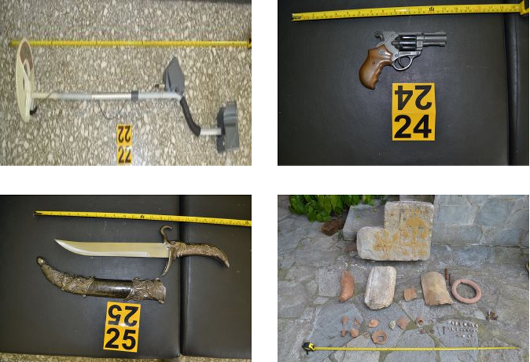 - Έναν ανιχνευτή μετάλλων καθώς επίσης και δύο (2) αυτοσχέδιες βέργες για την ανίχνευση μεταλλικών αντικειμένων.