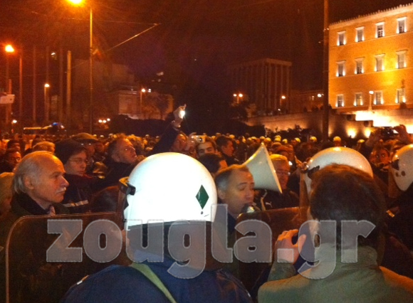 Για μόλις μερικές εκατοντάδες πολίτες, οι οποίοι συγκεντρώθηκαν στην πλατεία Συντάγματος, για να ενώσουν τις φωνές τους και να βροντοφωνάξουν για τα μέτρα αιματηρής λιτότητας, δίνοντας παράλληλα το έναυσμα για μία νέα σειρά κινητοποιήσεων, η αστυνομία επέδειξε αστραπιαία αντανακλαστικά και επενέβη, καταστέλλοντας την ειρηνική διαδήλωση.
