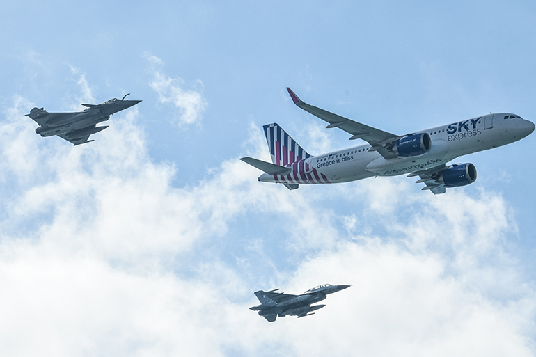 Όσοι παρευρέθηκαν στην εκδήλωση είδαν τα ελληνικά αεροσκάφη να σαρώνουν τους αιθέρες, πραγματοποιώντας εντυπωσιακούς ελιγμούς.