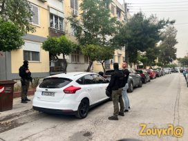Ολοκληρώθηκε η επιχείρηση της Δίωξης ναρκωτικών και της ΕΚΑΜ στην Αγία Βαρβάρα, με τους αστυνομικούς να αποχωρούν και να κατευθύνονται προς το κτήριο της ΓΑΔΑ και τον 11ο όροφο.