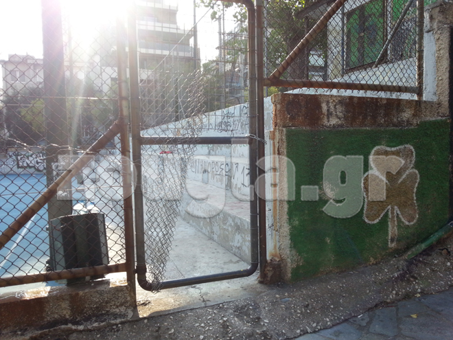 Τραγική η κατάσταση στις αθλητικές εγκαταστάσεις της περιοχής Ελληνορώσων του Δήμου Αθηναίων, στη συμβολή των οδών Γεωργίου Βλάχου και Εφταλιώτη.