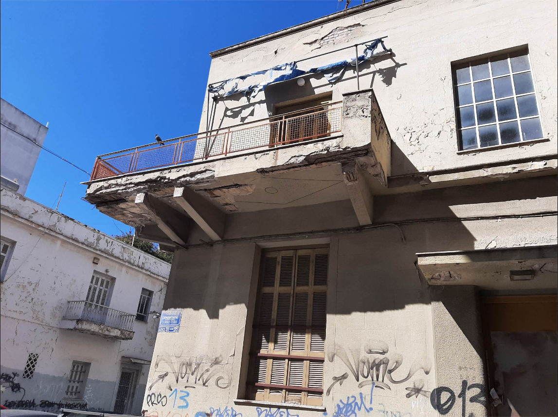 Οι πτώσεις σοβάδων και κομματιών τσιμέντου, από το κάτω μέρος του μπαλκονιού είναι συνεχείς και φυσικά ο κίνδυνος κατάρρευσης του ανά πάσα στιγμή είναι επίφοβος.