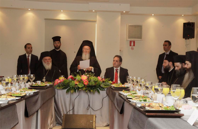 Τον Οικουμενικό Πατριάρχη συνόδευαν ο μητροπολίτης Περγάμου Ιωάννης, ο αρχιγραμματέας της Ιεράς Συνόδου Βαρθολομαίος Σαμαράς και ο κ. Νικόλαος Μαγγίνας.